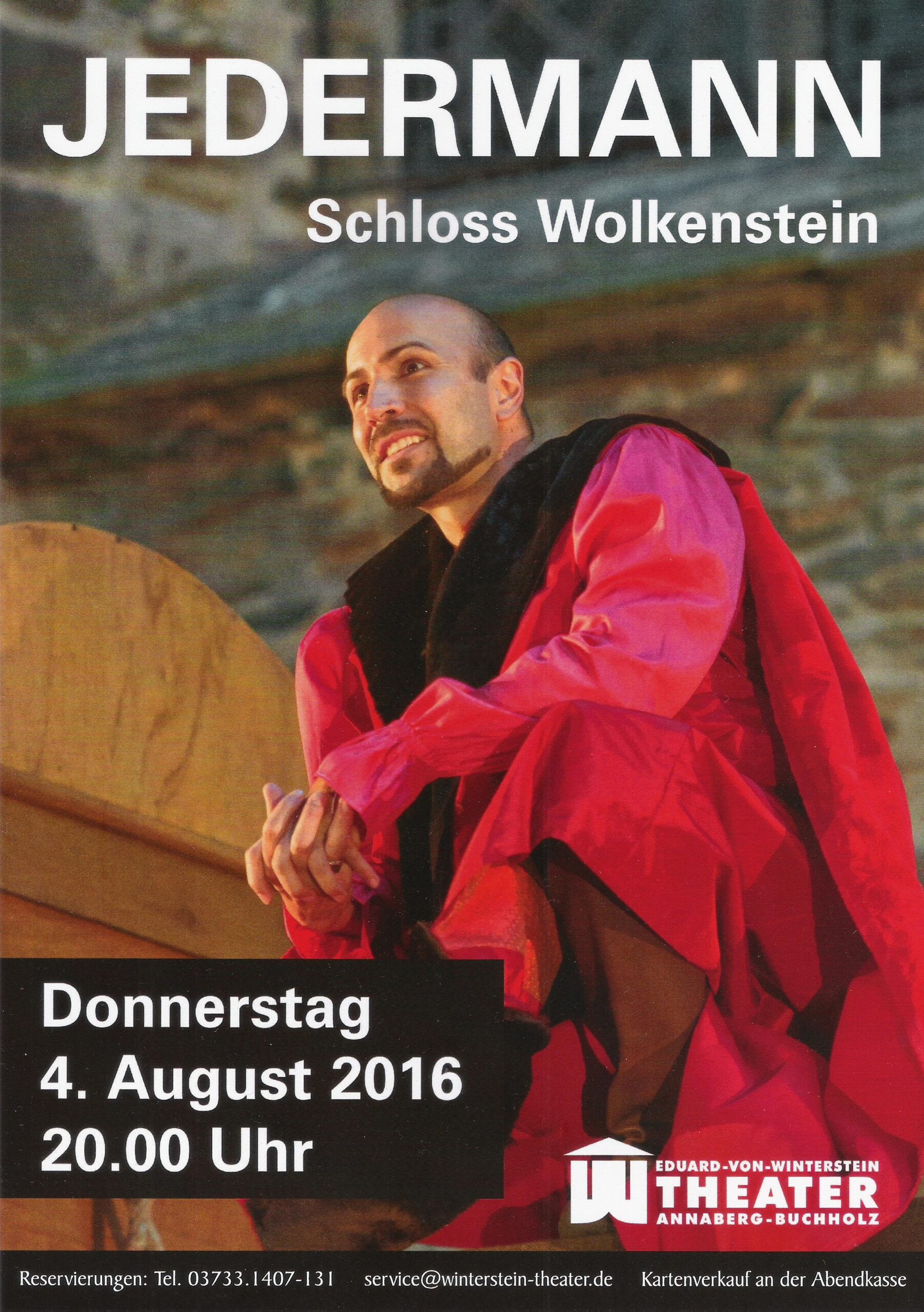 Am Donnerstag, 4.8.2016, spielt das Eduard-von-Winterstein-Theater Annaberg-Buchholz um 20 Uhr im Schlosshof Wolkenstein den “Jedermann”.